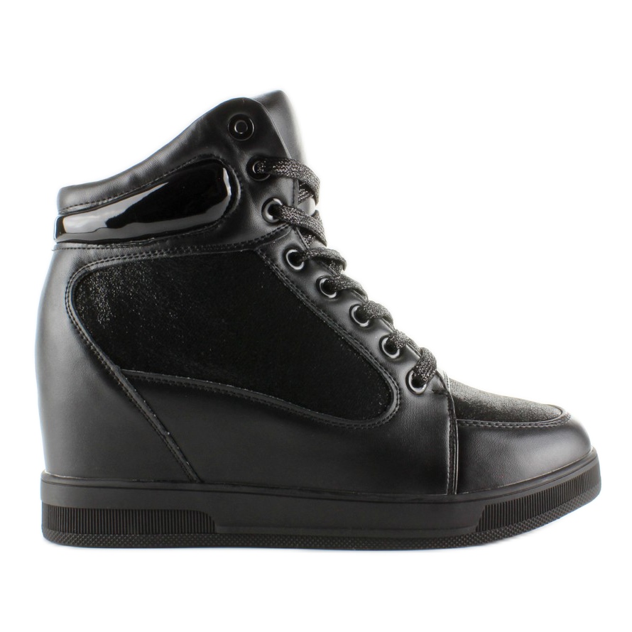 Descoperiți stil și confort unic cu pantofii sport înalți 2017-3 într-o culoare clasică neagră. Acești adidași uimitori de damă cu o pană ascunsă înălțime de 7,5 cm combină eleganța și designul modern. Fabricate din trei texturi materiale - piele ecologică integrală, țesătură și o inserție patentată la gleznă - oferă nu numai un aspect atractiv, ci și o ventilație adecvată și confort de purtare.