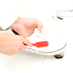 După aplicarea înălbitorului, asigurați-vă că vă clătiți pantofii cu apă caldă.