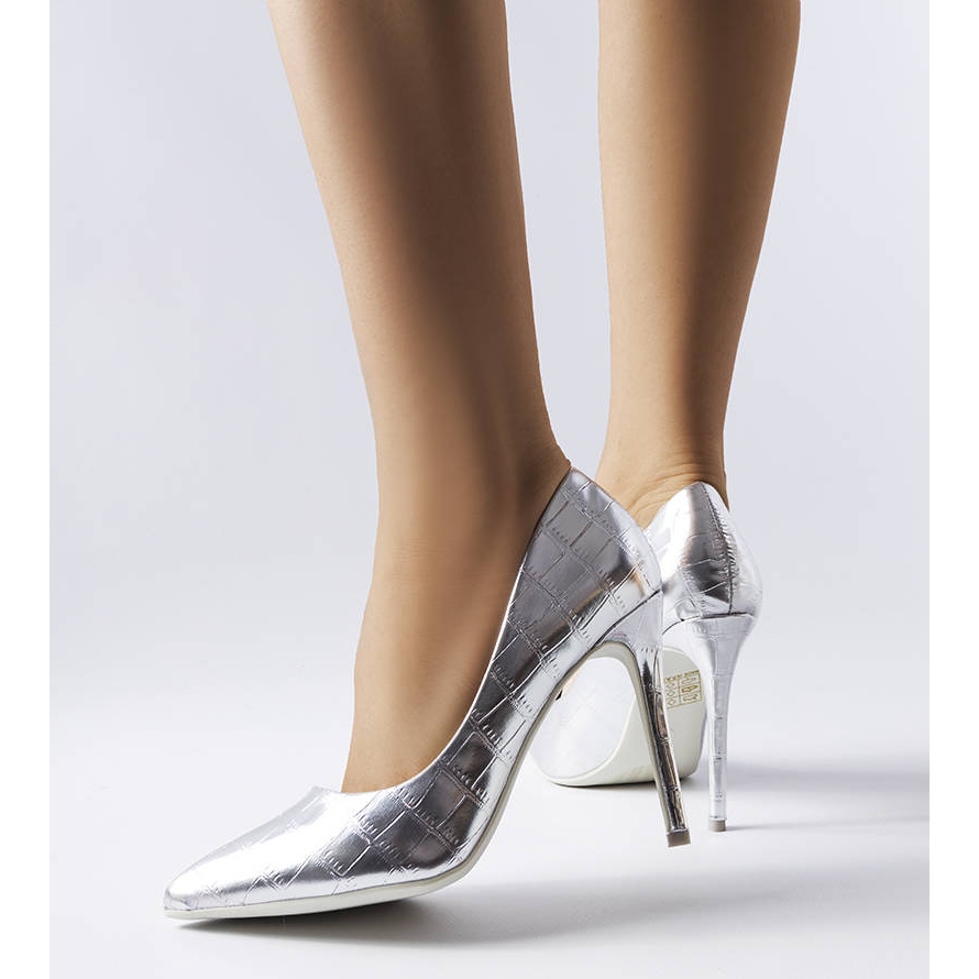 Descoperă eleganța și feminitatea cu pantofii Raison de la PA1, care încântă nu doar prin aspect, ci și prin confortul la purtare. Aceste pantofi cu toc argintiu cu imprimare în piele de crocodil sunt alegerea perfectă pentru femeile care doresc să iasă în evidență din mulțime. Un toc zvelt, inalt de 10 cm si un varf ascutit fac ca picioarele sa arate fenomenal si subtiri silueta.