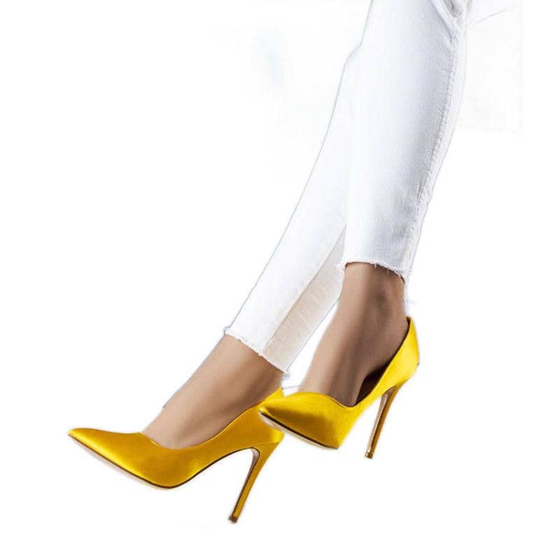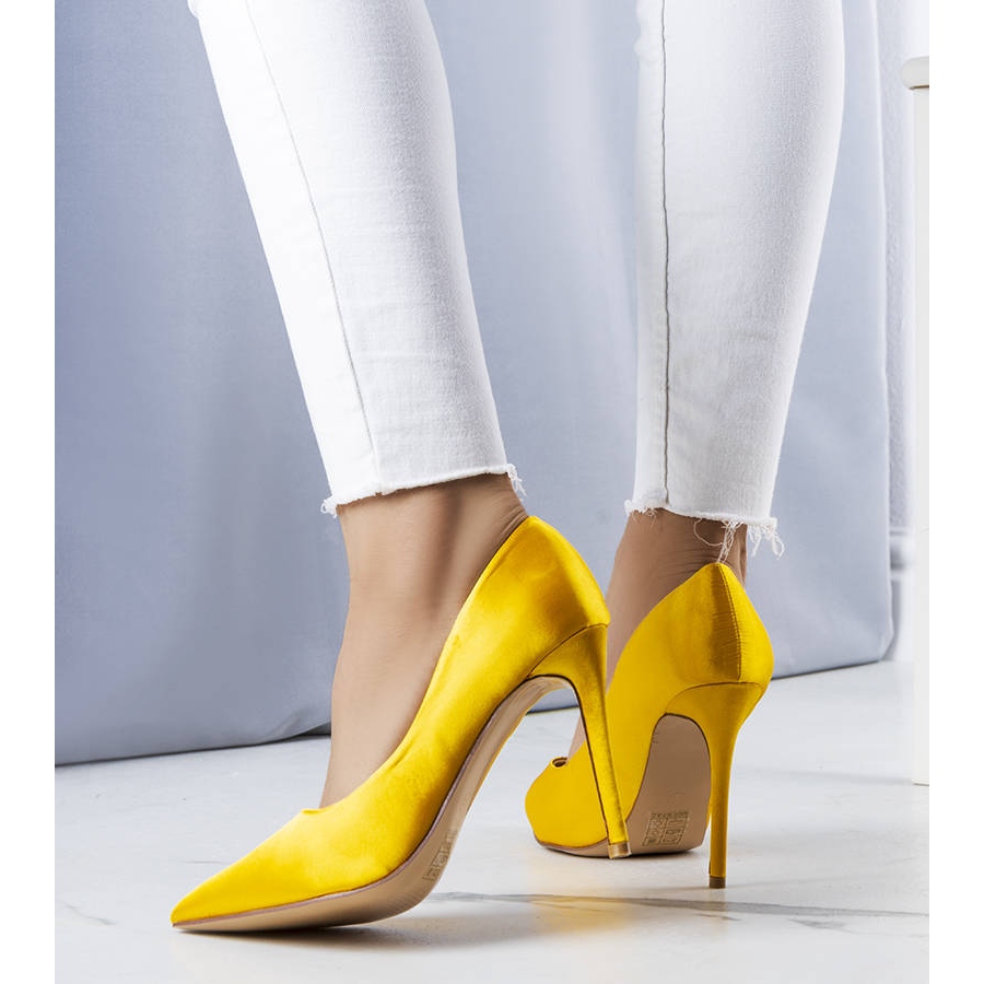 Descoperiți eleganța și stilul în tocuri unice Lochlan de la producătorul BM. Acești pantofi galbeni cu finisaj satinat sunt absolut obligatorii în garderoba oricărei femei. Varful lor ascutit si tocurile inalte (10 cm inaltime) subliniaza supletea picioarelor, iar designul slip-on asigura usurinta la achizitionare.