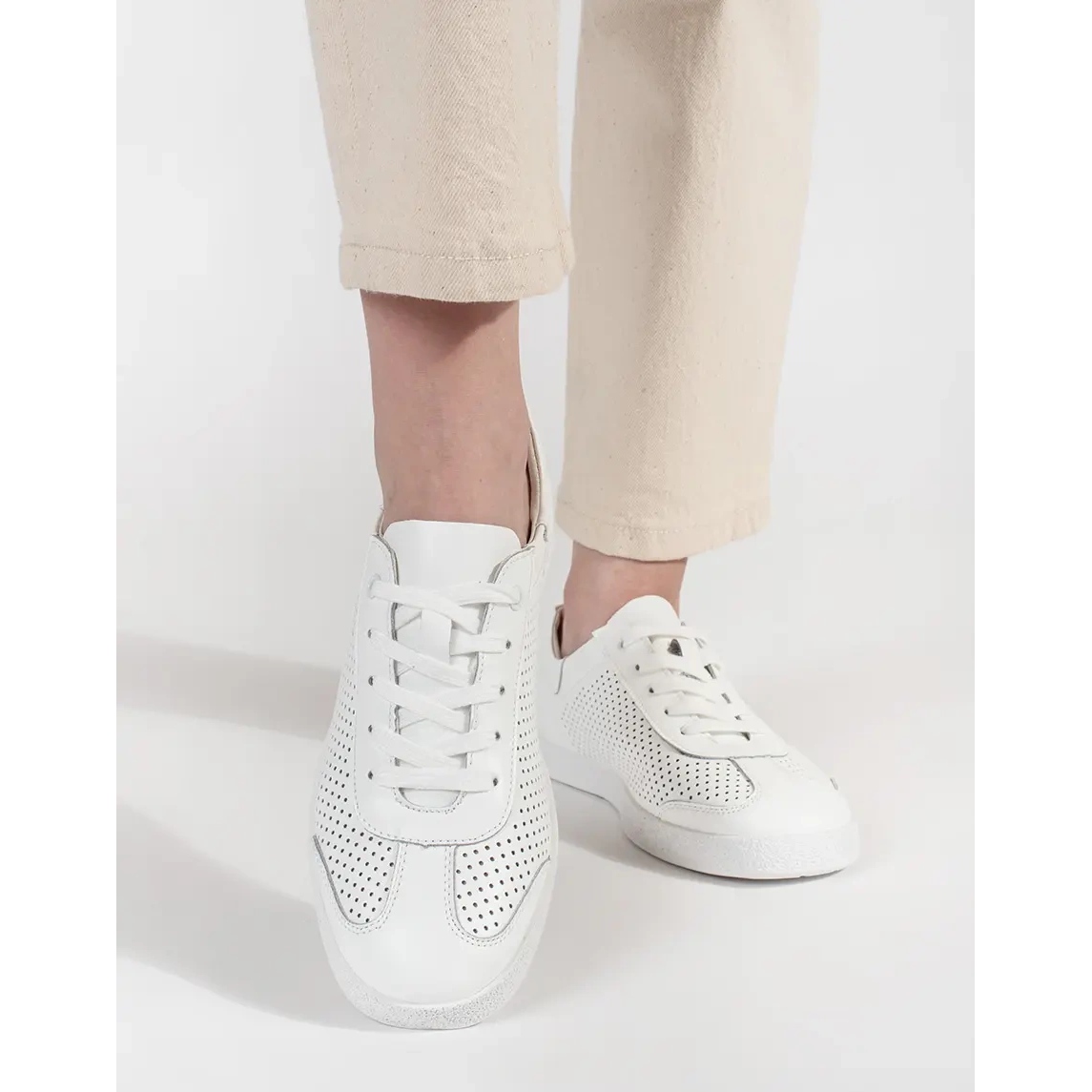 Adidașii albi Openwork de la Natural Leather by Goodin este alegerea perfectă pentru femeile care doresc să combine confortul cu un aspect la modă. Fabricate din piele naturală de cea mai înaltă calitate, acești pantofi mai ușori, cu un design deschis, oferă o ventilație excelentă, ceea ce le face o propunere perfectă pentru zile mai calde.