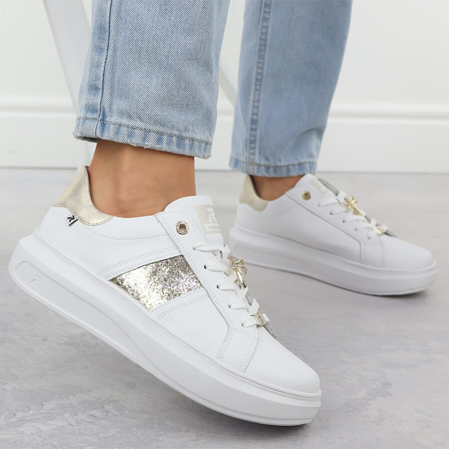 Adidașii din piele pentru femei de pe platforma White Rieker 1202-82 sunt o alegere excelentă pentru femeile care doresc să combine confortul cu stilul la modă. Fabricate din piele naturală de înaltă calitate, acești pantofi vă vor oferi nu numai un aspect elegant, ci și o durabilitate excepțională.