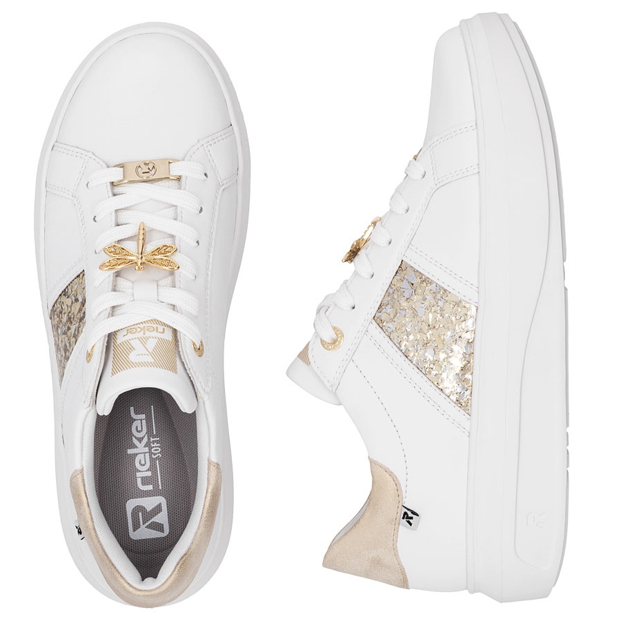 Rieker Adidaje din piele pentru femei pe platforma White Rieker 1202-82 alb