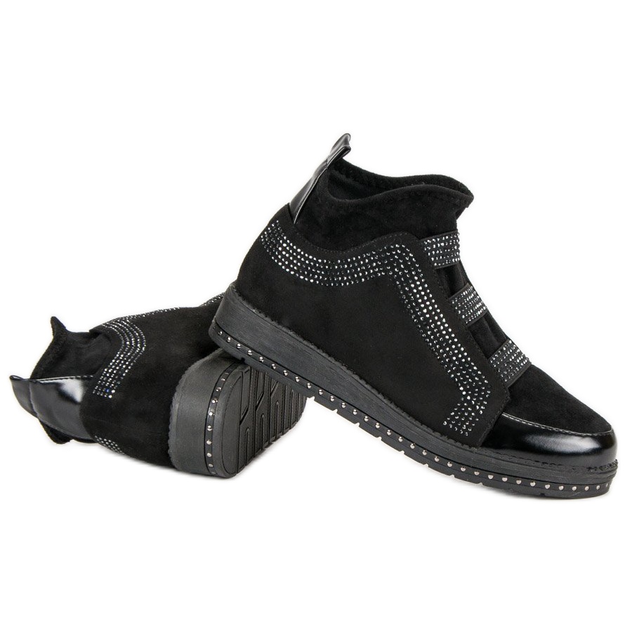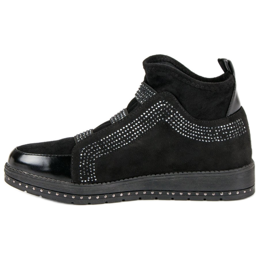 Adidașii negri cu slip-on sunt o alegere perfectă pentru fiecare femeie la modă care dorește să adauge un pic de originalitate stilului său. Acești pantofi unici cu cristale decorative nu numai că atrag atenția, dar oferă și confort pentru purtarea de zi cu zi. Sunt perfecte pentru ținutele casual, combinând un stil sportiv cu un accent elegant.