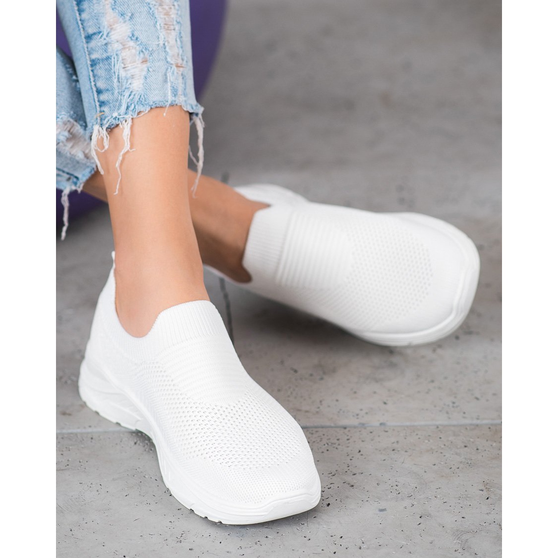 Confectionati din material, atat la exterior, cat si la interior, acesti pantofi sport la moda se potrivesc perfect stilului casual, iar culoarea lor alba universala ii face sa se potriveasca cu orice tinuta - de la blugi largi la rochii de vara.