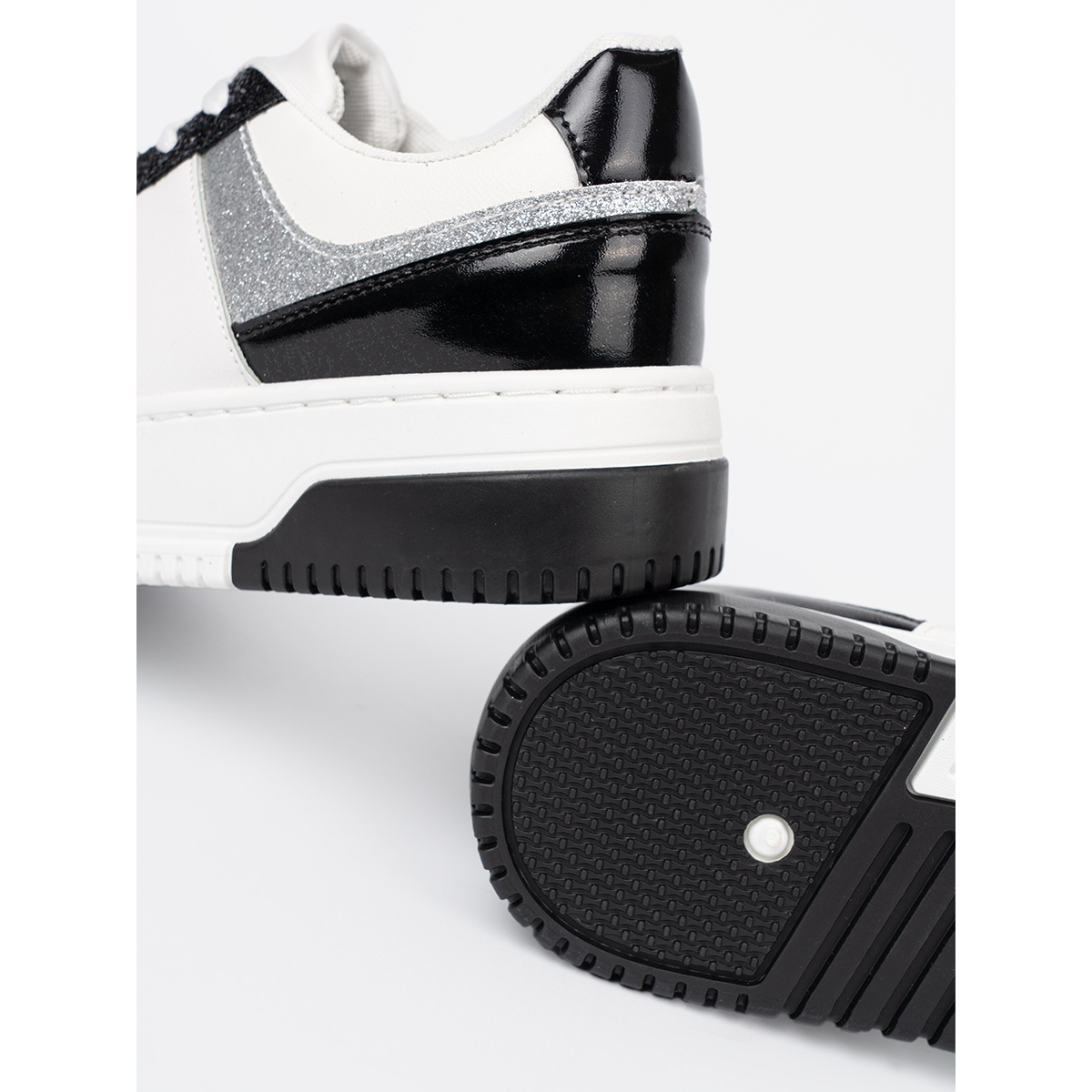 Shelvt Shelvt Adidași alb -negru cu detalii argintii strălucitoare