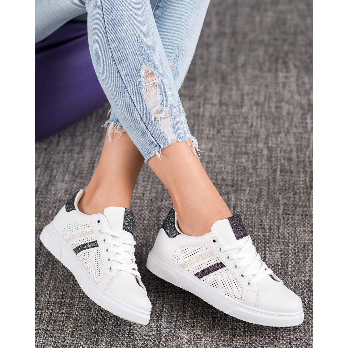 Detalii: SHELOVET Adidași albi cu ajur negru