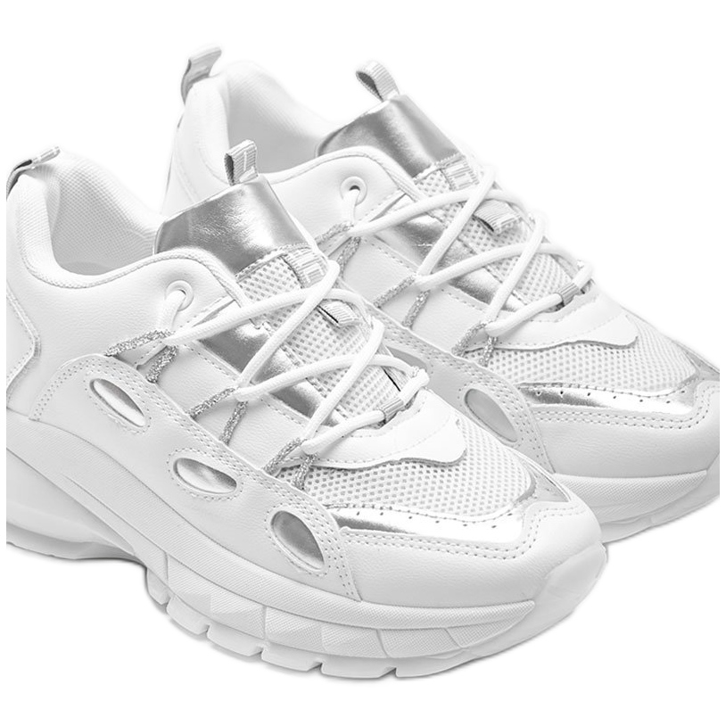 Descoperiți stilul și confortul în adidași albi cu inserții argintii Guadalupe. Acești pantofi unici, confecționați din piele ecologică de înaltă calitate, se potrivesc perfect cu ultimele tendințe de modă. Se caracterizează printr-un design modern, evidențiat de accente argintii originale pe partea superioară, ceea ce le face o alegere perfectă pentru utilizarea de zi cu zi.