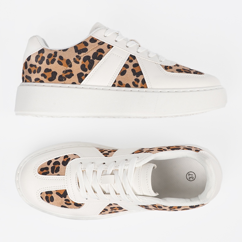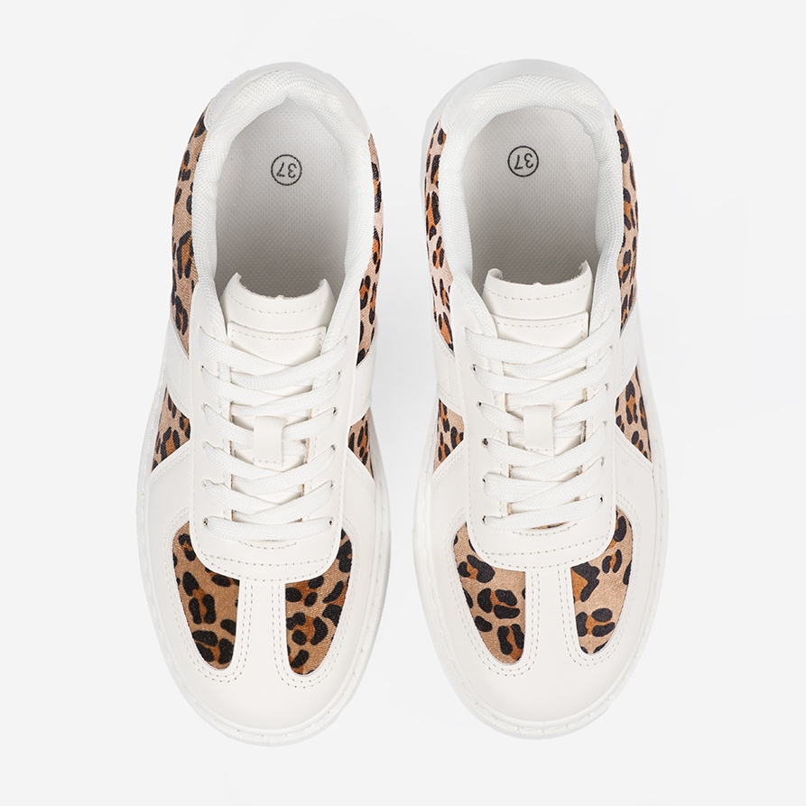 Inna marka Adidași albi cu inserții cu imprimeu leopard maro