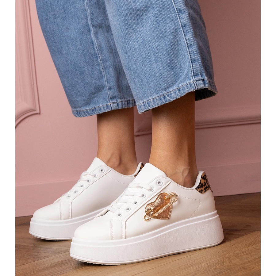 Inna marka Adidași albi cu pini de zircon și un adaos de leopard