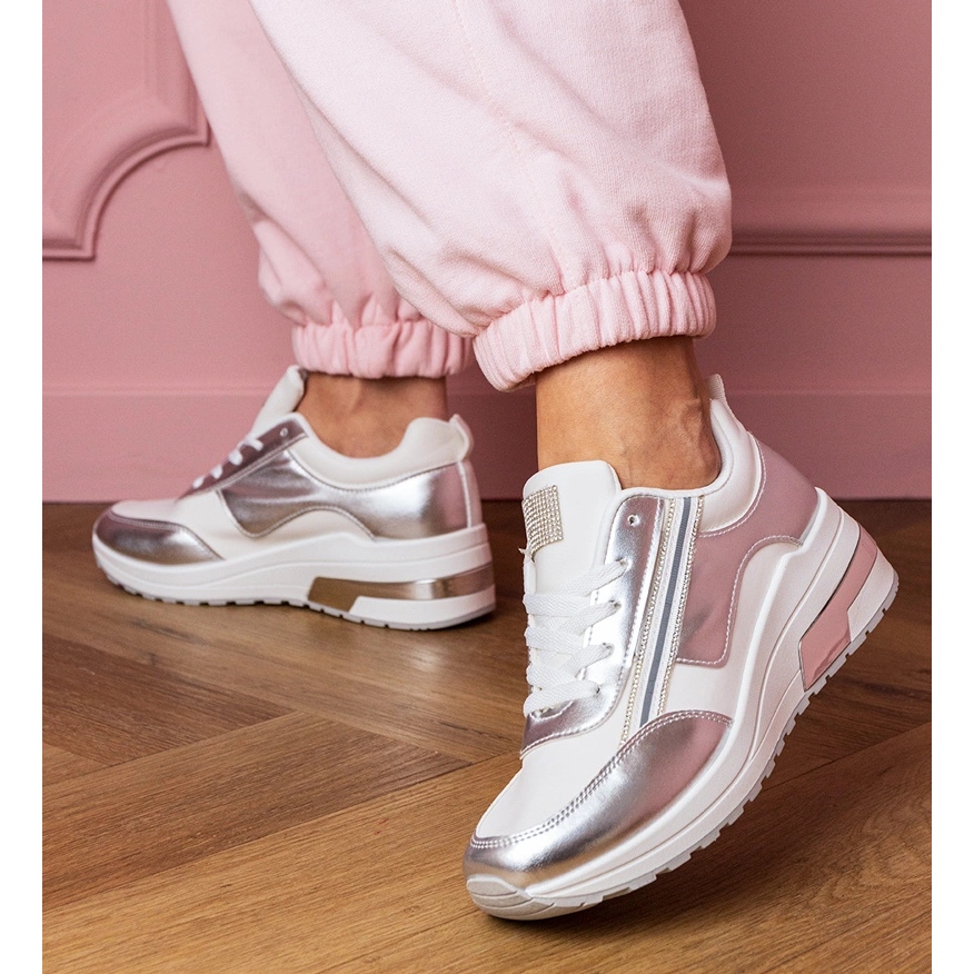 Inna marka Adidași albi cu zirconi și o inserție metalică