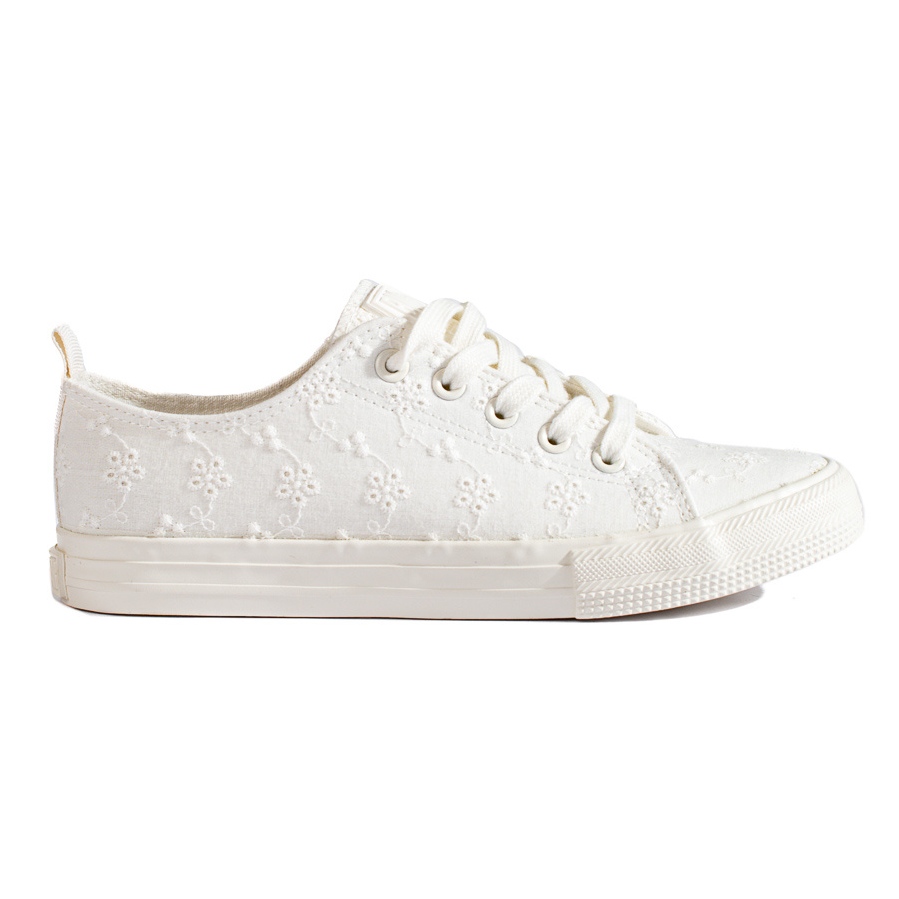 Materialul exterior și interior este realizat din țesătură 100% textilă, ceea ce mărește confortul de utilizare și facilitează păstrarea pantofilor curați. Culoarea albă clasică combinată cu dantelă delicată este un detaliu interesant și conferă pantofilor un farmec de fetiță. Designerii Big Star s-au asigurat, de asemenea, că degetele de la picioare sunt rotunde și pline, iar închiderea cu șireturi permite adidașilor să se potrivească perfect piciorului.