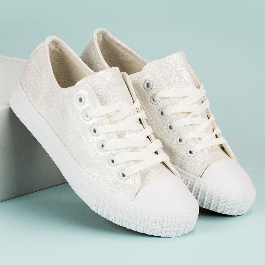 Vă prezentăm pantofi sport albi eleganti care vor încânta fiecare femeie care prețuiește stilul și confortul. Acești adidași de damă, montați pe o platformă înaltă de 2 cm, sunt alegerea perfectă pentru persoanele care doresc să adauge un pic de strălucire stilurilor lor de zi cu zi și de petrecere. Materialul ușor strălucitor conferă pantofilor un farmec subtil care se potrivește perfect cu haine mai sofisticate.