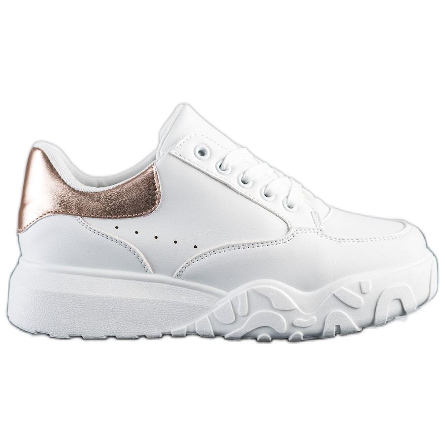 Alege adidași albi la modă SHELOVET într-o nuanță aurie și subliniază-ți stilul unic!