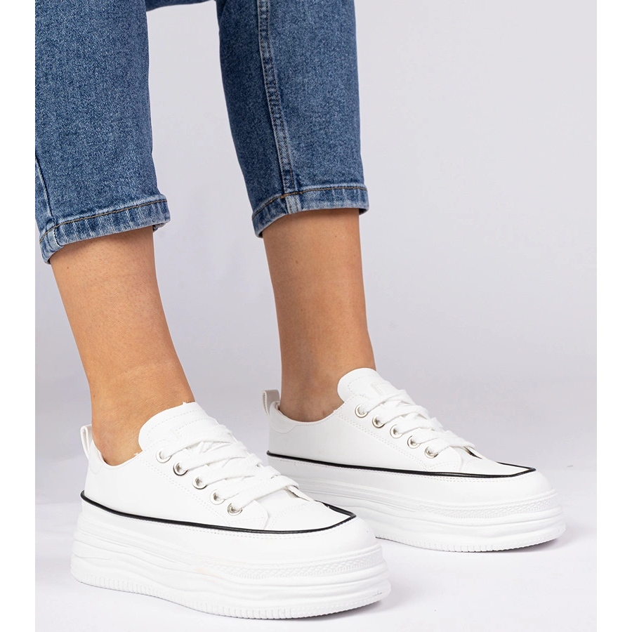 Detalii: Adidași albi pentru femei pe o talpă mare
