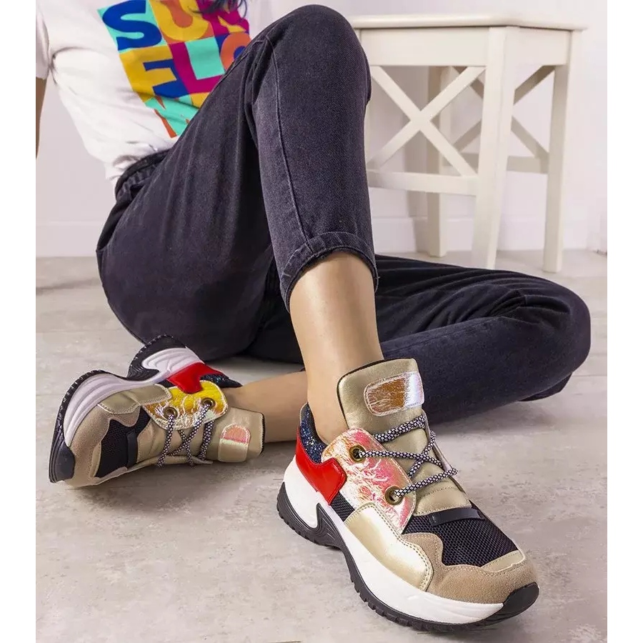Detalii: Adidași aurii cu talpă înaltă de primăvară negru