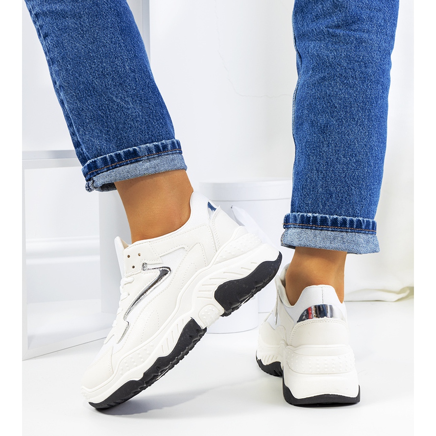 Detalii: Adidasi Badillo albi strălucitori argint