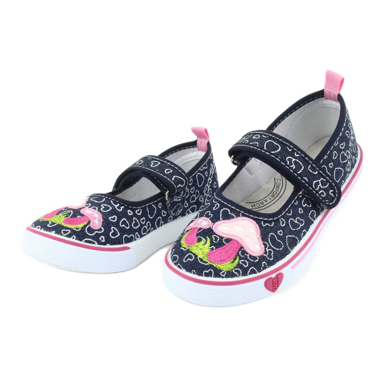 Detalii: American Club Adidași balerini cu inimă Velcro TEN15 alb albastru marin roz