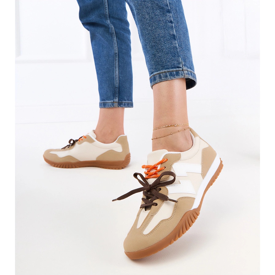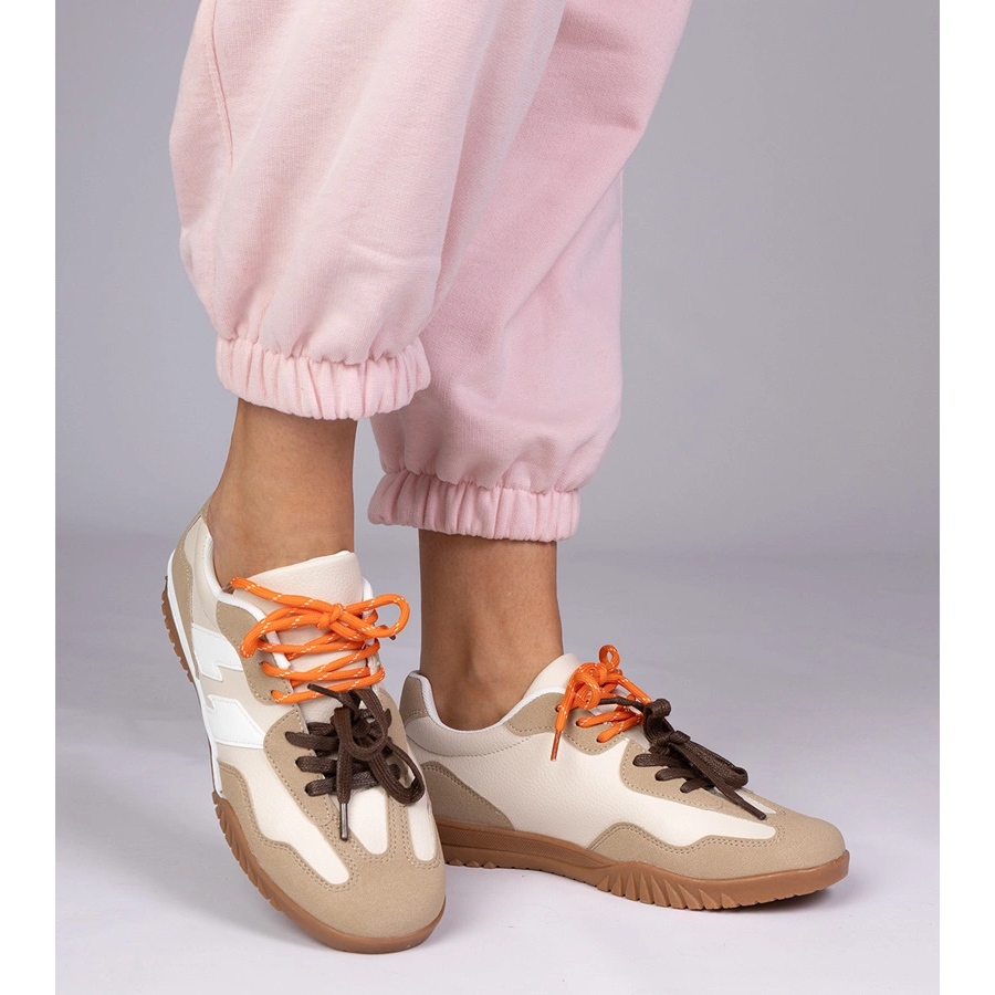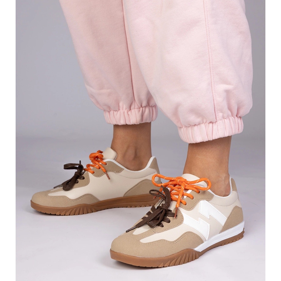 Proiectate într -o culoare bej minimalistă, aceste adidași se îmbină perfect cu diverse stilizări. Platforma lor înaltă de 2,5 cm adaugă o creștere ușoară, asigurând în același timp stabilitatea la mers. Dantele colorate introduc puțină prospețime și bucurie eleganței clasice a încălțămintei.