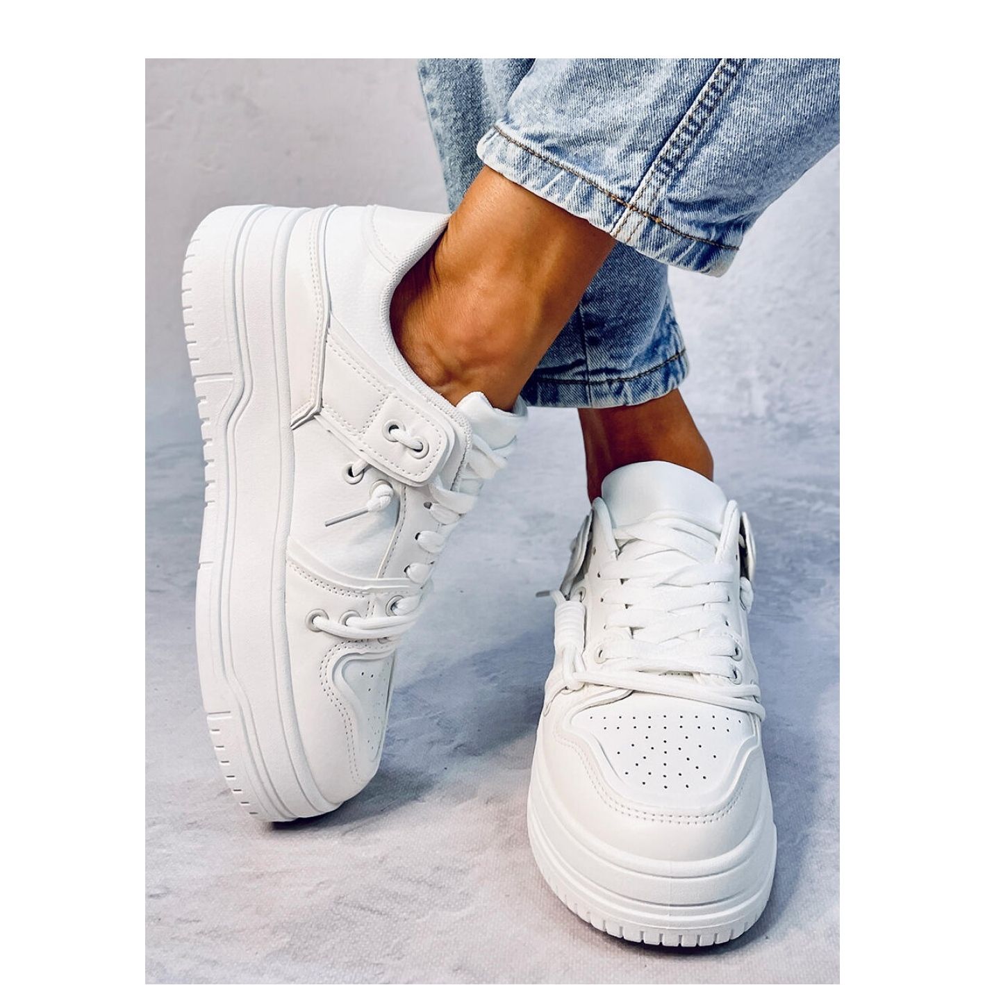 Inello Adidasi Clavell White cu talpa inalta - Inello alb