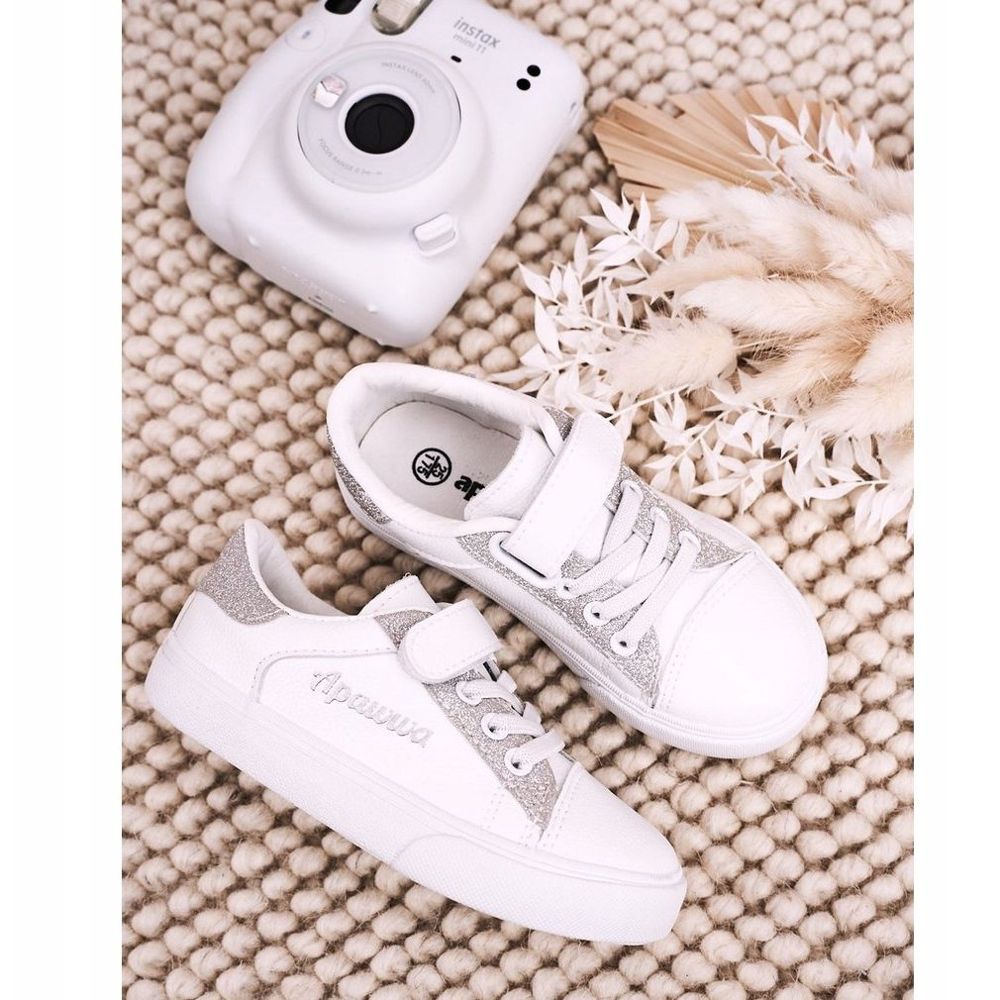 Adidașii pentru copii Apawwa Camila sunt o alegere perfectă pentru fiecare fetiță. Acești adidași albi, decorați cu sclipici argintii delicat, nu numai că încântă prin aspectul lor, dar asigură și confort și siguranță în timpul utilizării. Fabricate din piele ecologică de înaltă calitate, sunt durabile și ușor de curățat.