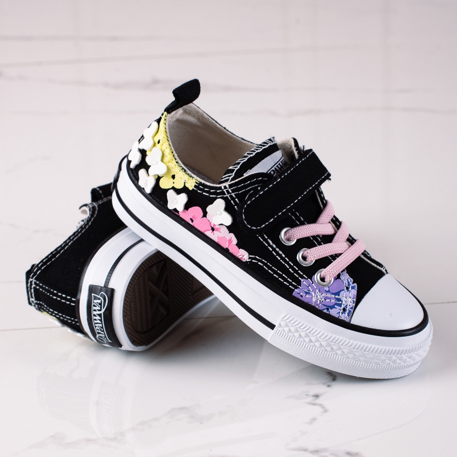 SHELOVET Adidași copii Shelovet negri cu flori negru multicolor