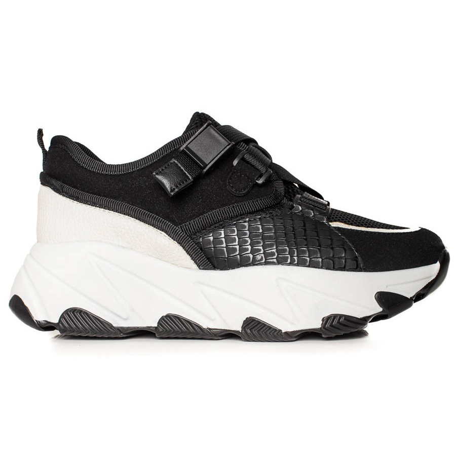 Adidașii Potocki cu cataramă în negru sunt o alegere perfectă pentru femeile care apreciază confortul, stilul și designul modern. Realizați dintr-o combinație de imitație de piele și materiale textile, acești pantofi oferă un aspect atractiv, rămânând în același timp confortabili pentru purtarea de zi cu zi.