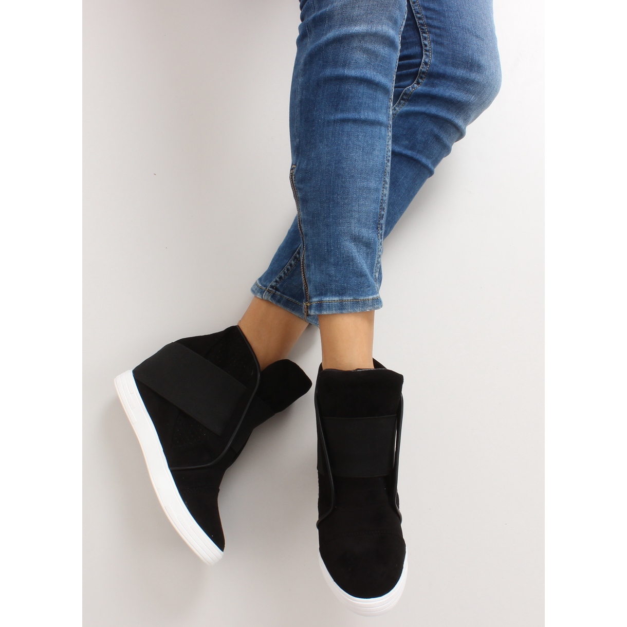 Detalii: Adidași cu elastice largi negre negru