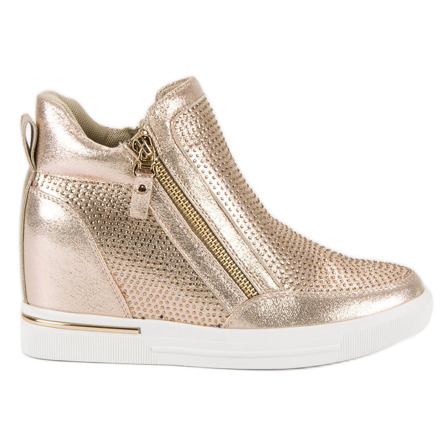 Pentru o femeie elegantă care vrea să-și mențină stilul unic chiar și în stiluri sportive, adidașii cu fermoar galben și auriu sunt alegerea perfectă. Acești pantofi originali se disting nu numai prin confort, ci și prin design unic. Decorati cu cristale delicate si confectionati din piele ecologica de inalta calitate, acesti adidasi incanta prin estetica si lucrarea atenta.
