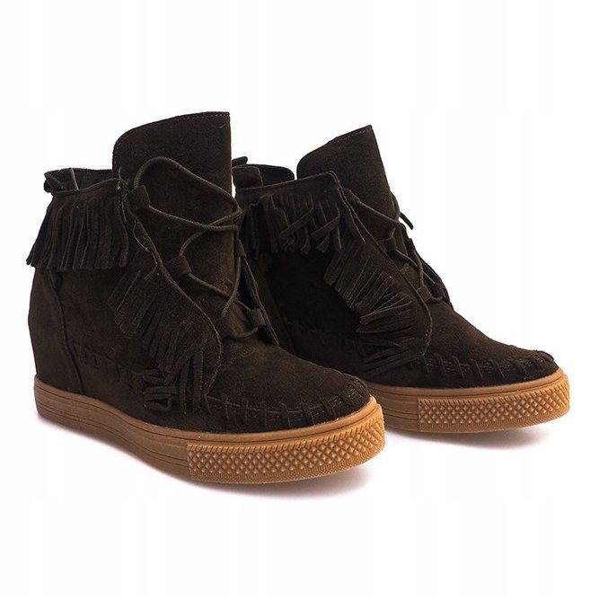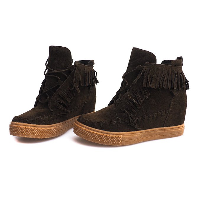 Detalii: Adidași cu pană cu franjuri Boho F3 Verde