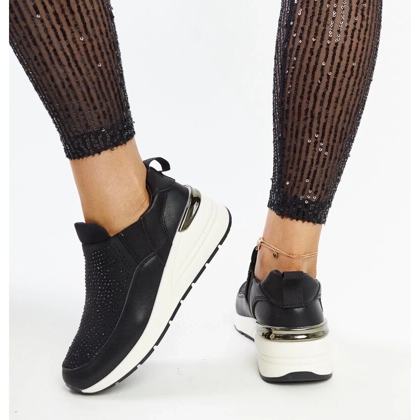 D/GMR D/GMR Adidași cu pană neagră cu zirconi și elemente aurii Ashleey negru