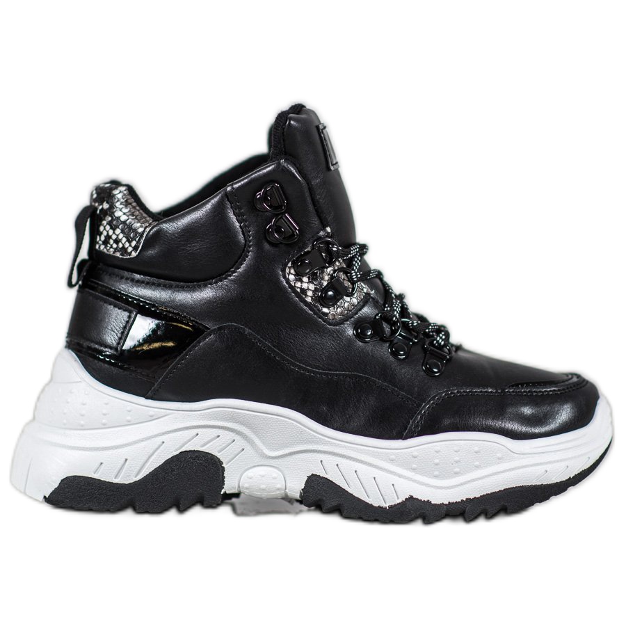 Combinația dintre stilul sportiv și un pic de eleganță este o combinație perfectă pe care o vei găsi în pantofii negri Fashion cu șireturi de la Bella Paris. Acești pantofi unici de damă se caracterizează prin fețe înălțate, decorate cu inserții cu motiv de piele de șarpe, care le conferă un caracter unic.