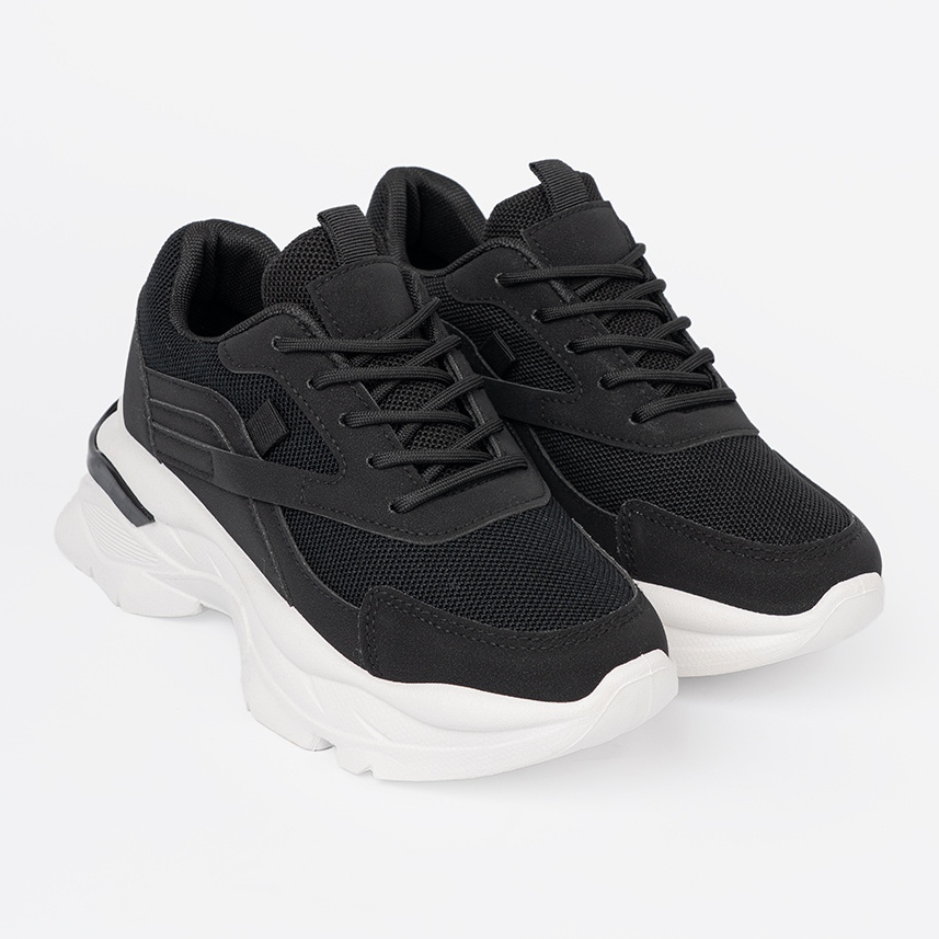 Shelvt Shelvt Adidași cu sport negru pe o talpă alb gros