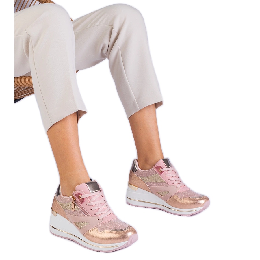 Detalii: Adidași cu sport roz pe platformă decorate cu sclipici și o inserție metalică