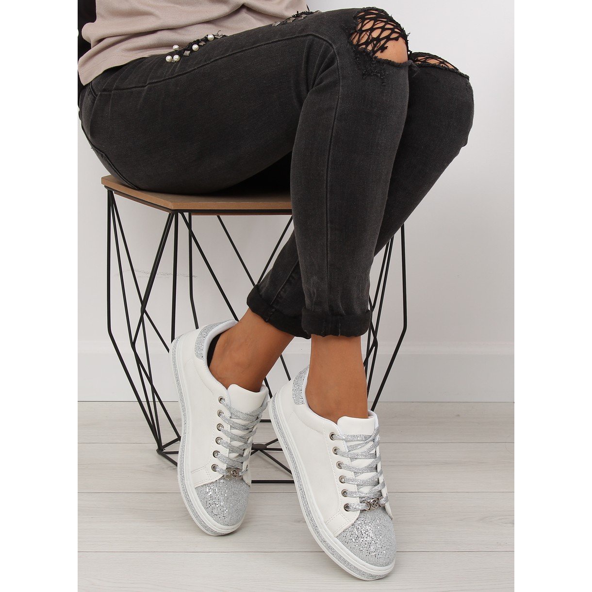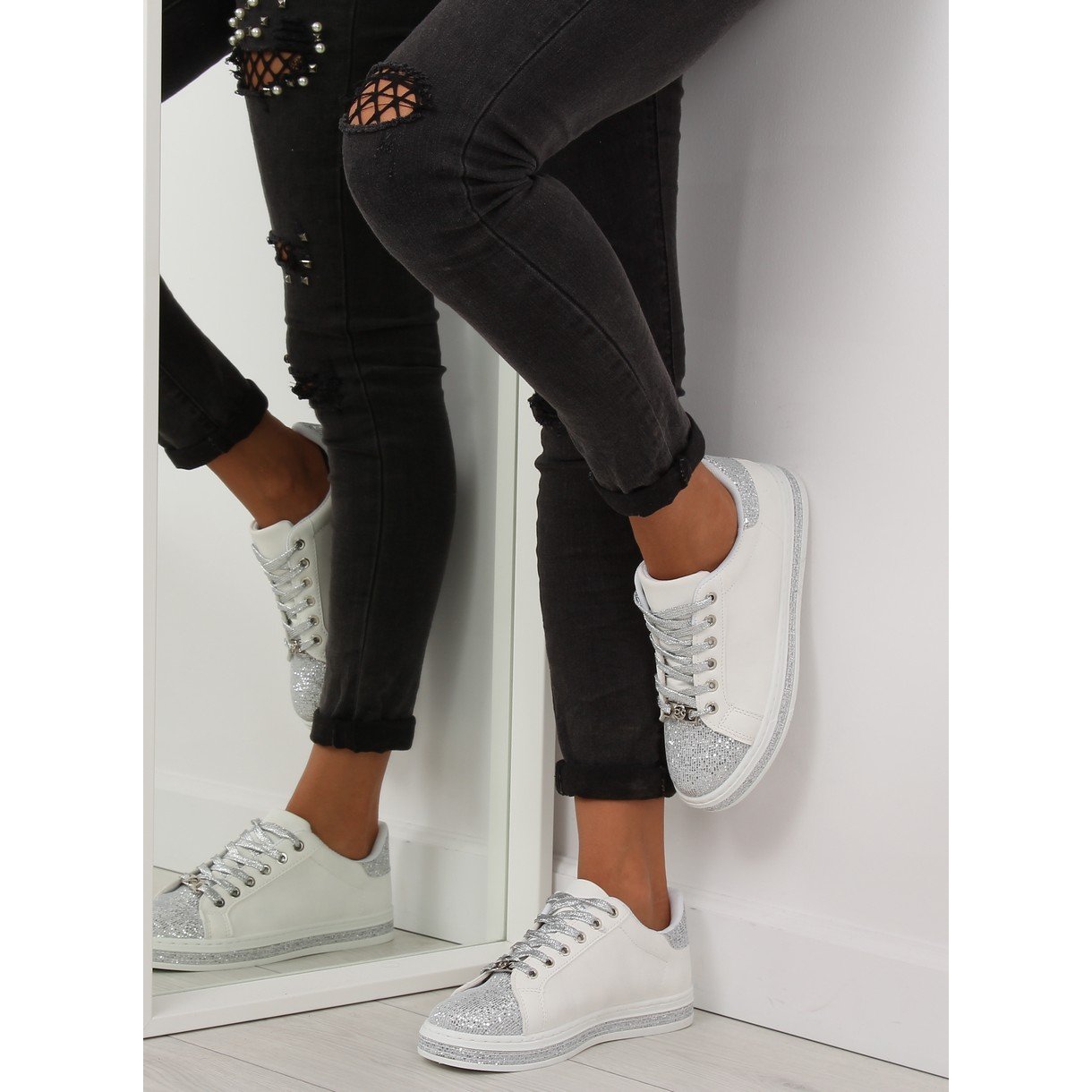 Detalii: Adidași de damă albi și argintii BK-81