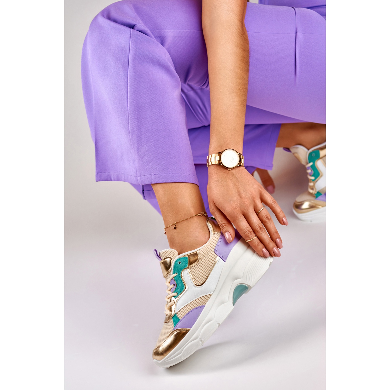 Inna marka Adidasi de dama cu accesorii aurii de la Geori multicolor