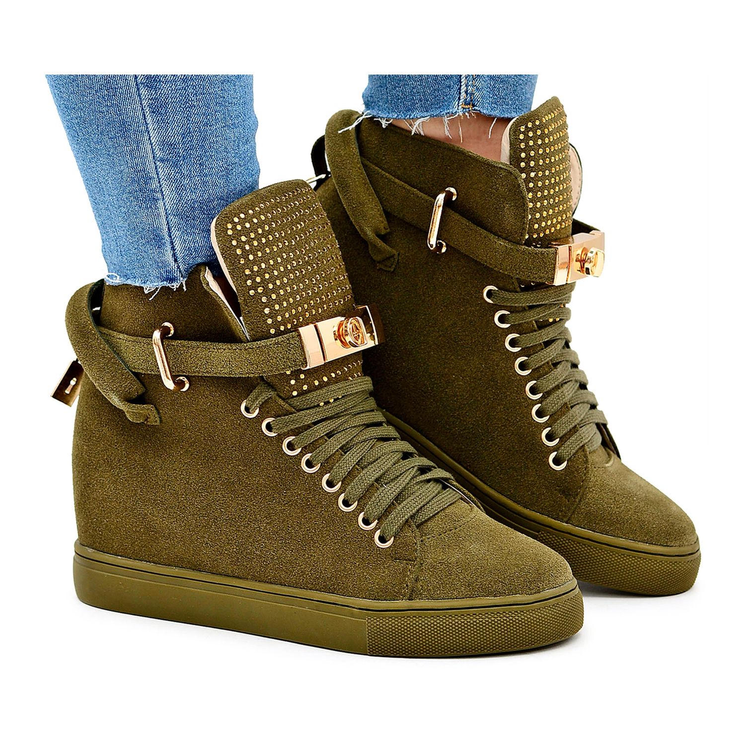 LU BOO Adidași de damă Lu Boo Suede Golden Candlock Olive Elani verde