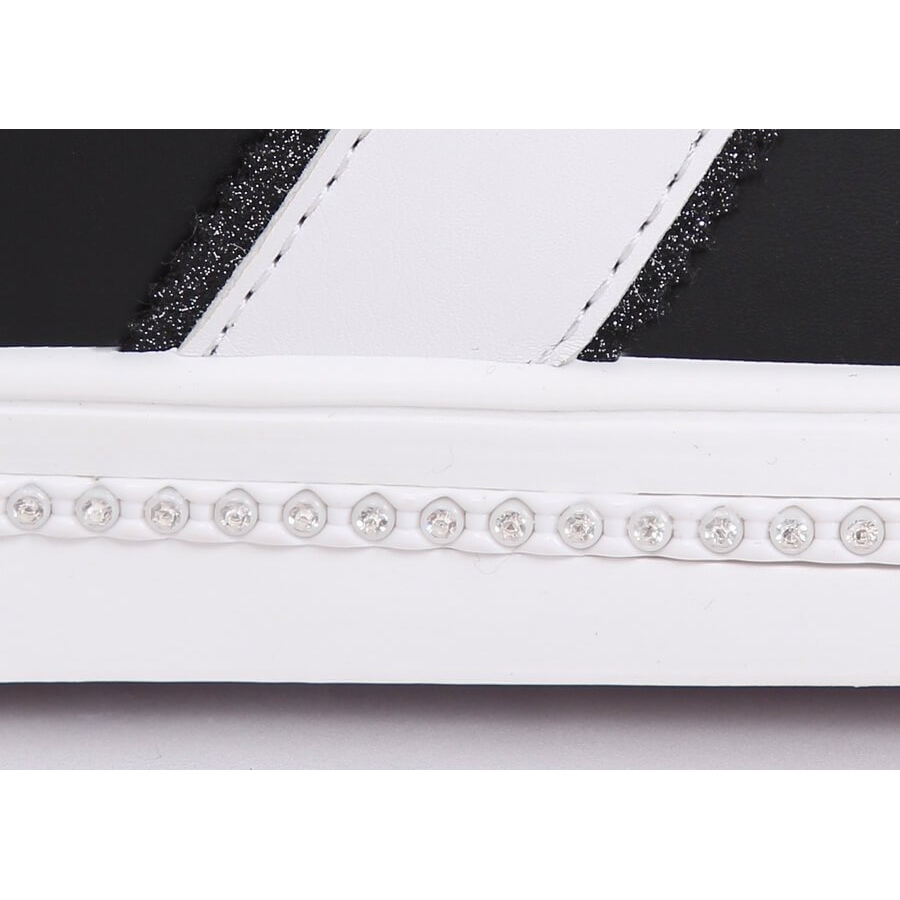 Descoperă farmecul unic al adidașilor de damă negre B5133B Black! Acești pantofi cu șireturi sunt combinația perfectă dintre clasic și modern, care va conferi oricărui stil un caracter unic. Culoarea neagră universală le face să se potrivească cu multe ținute, iar detaliile decorate cu zirconi pe talpa albă adaugă eleganță și strălucire unică.