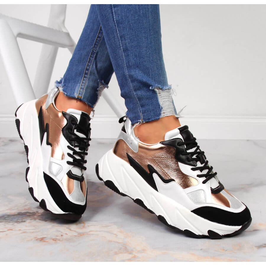 Detalii: Adidasi de dama pe platforma Potocki alb si auriu de aur