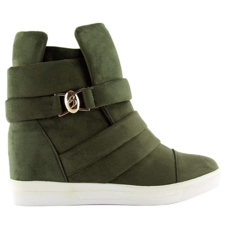 Adidașii de damă H6507 A.GREEN sunt combinația perfectă de stil și confort, perfectă pentru zilele mai reci. Acești pantofi eleganți cu pană ascunsă de 7 cm înălțime nu numai că adaugă câțiva centimetri înălțimii tale, dar garantează și confortul la purtare. Partea superioară a acestora este decorată cu dungi largi care se înfășoară subtil în jurul piciorului și atrag atenția datorită decorului auriu, oferind întregului accent ușor luxos.
