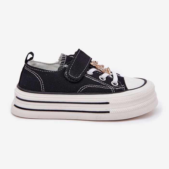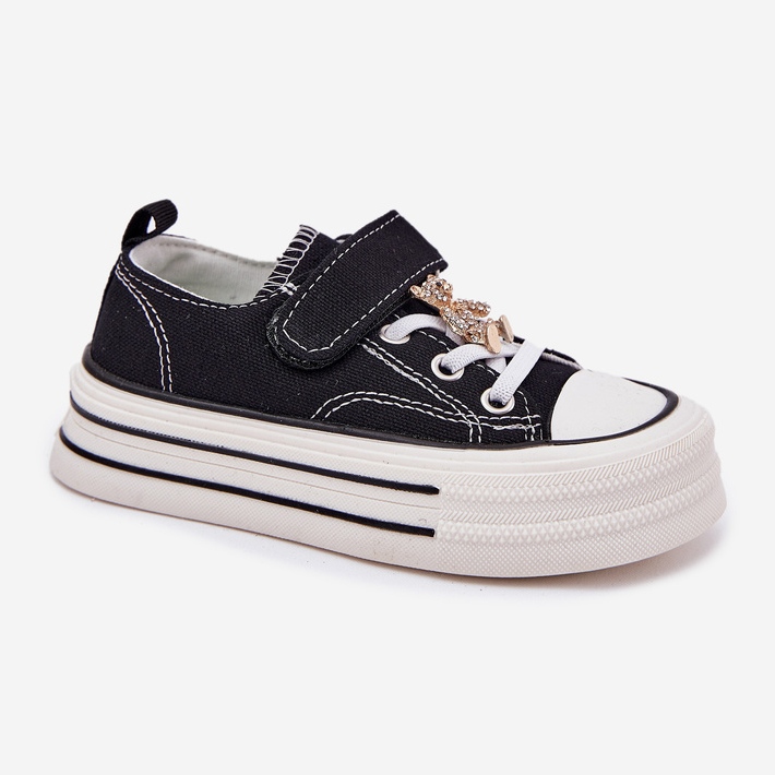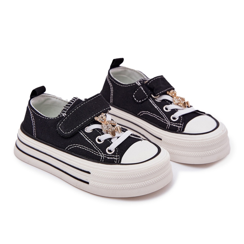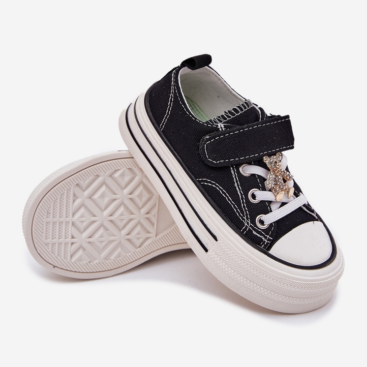 Adidașii de fetiță elegante și confortabile în negru, cu un parc de aur fermecător, în formă de ursuleț de pluș sunt o alegere excelentă pentru fiecare mic fashionistă. Fabricate din material textil, acestea asigură nu numai durabilitatea, ci și confortul de a purta toată ziua. O talpă groasă garantează o amortizare bună, iar fixarea velcro combinată cu benzi elastice care imită șireturi face ca punerea și îndepărtarea pantofilor extrem de simpli chiar și pentru cei mai tineri.
