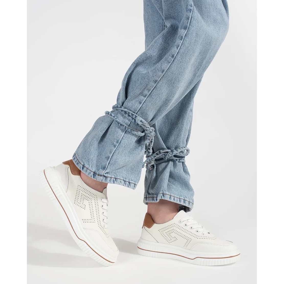 Detalii: Goodin Adidași de piele albă cu pumni