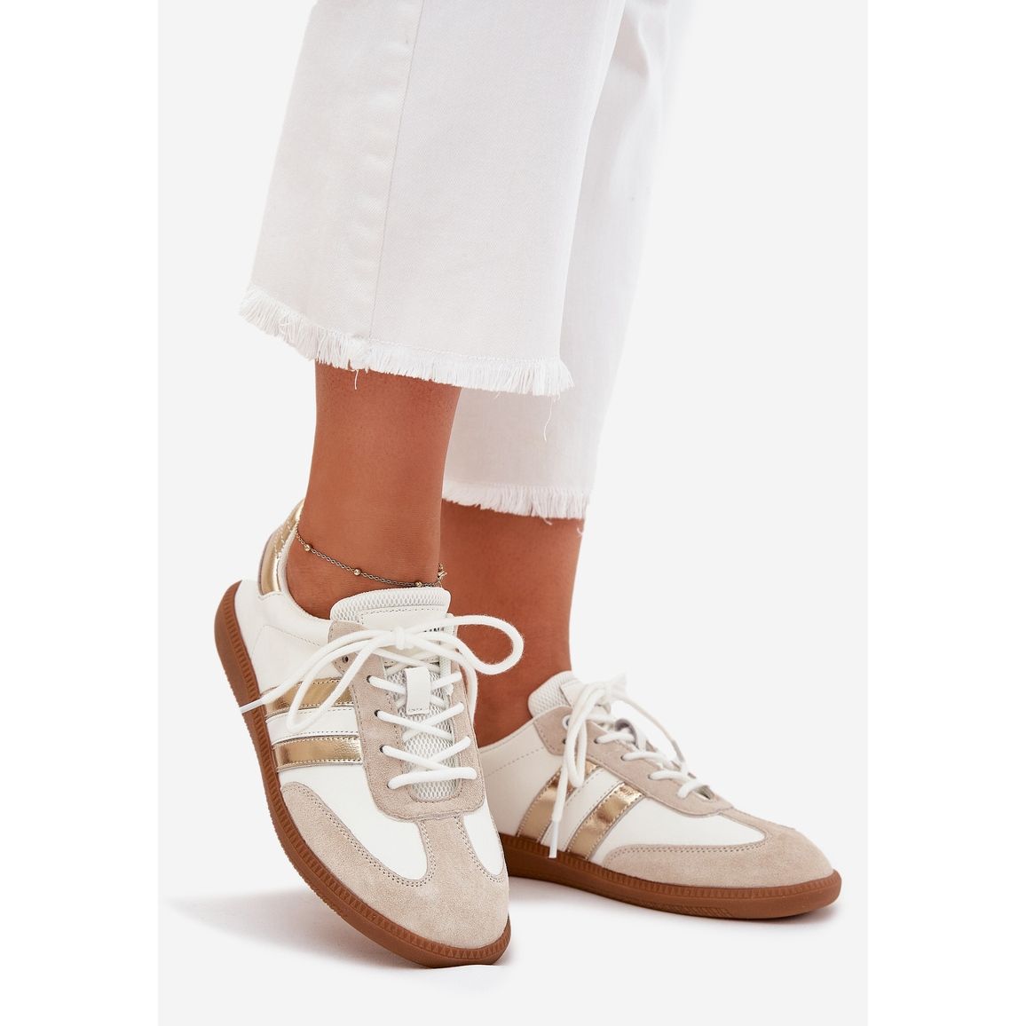 ** BOTO SNADINGS LOW PIELE LASE WHOMES ALB ȘI AUR ISMINA **
