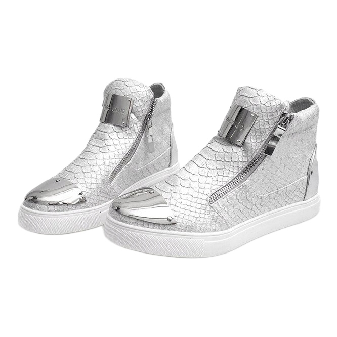 Descoperiți un stil extraordinar și un confort excepțional cu pantofii sport Q55 înalți într-o nuanță elegantă de argintiu. Acest nou model de la marca VIce este o propunere ideală pentru femeile care doresc să îmbine moda cu confortul. Adidașii argintii încântă cu versiunea lor bogat decorată, care se potrivesc perfect cu ultimele tendințe.