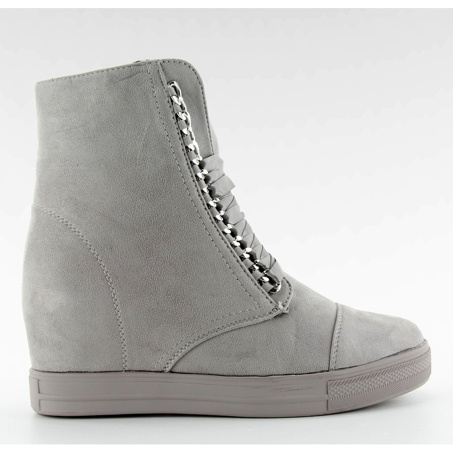 Adidașii NC92, de culoare gri, extrem de modelați, combină un design subtil și subțire cu soluții practice. Realizate din piele intoarsa ecologica, asezate pe un toc ascuns de 7,5 cm inaltime, subtiaza subtil silueta si adauga centimetri fara a pierde confortul. Șiretul decorativ cu o panglică din satin le conferă un caracter feminin, iar un fermoar ascuns pe interior le face ușor de pus rapid. Interiorul este căptușit complet cu blană delicată - perfect pentru zilele mai reci.