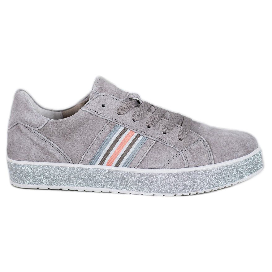 Adidașii din piele Filippo cu platformă cu sclipici în culoarea gri sunt alegerea perfectă pentru femeile moderne care apreciază confortul, stilul și versatilitatea. Acești pantofi sport eleganti sunt un must-have care se vor potrivi perfect în multe stiluri de zi cu zi, perfecti atât pentru plimbări, cât și pentru întâlnirile cu prietenii.