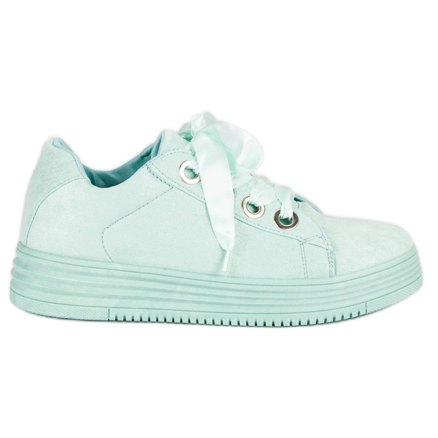 Descoperiți stil unic și confort cu pantofii sport de piele de căprioară verde mentă! Acești pantofi neobișnuiți combină un aspect casual cu o notă de eleganță, datorită șiretului din satin, stilizat. Culorile lor pastelate se potrivesc perfect cu tendințele actuale, iar platforma de cauciuc de 3,5 cm, căptată, le conferă un caracter sportiv, perfect pentru utilizarea de zi cu zi.