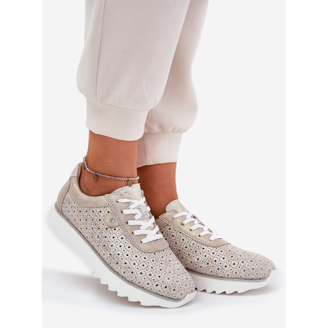 Detalii: S.Barski Adidași din piele de căprioară pe platforma Zloty LR51-927 de aur