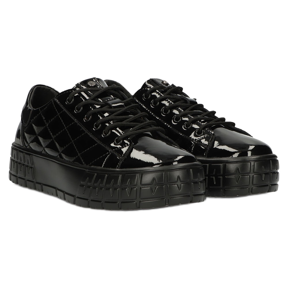 Filippo DP3932/22 BK - adidași pentru femei matlasate, lăcuite în negru elegant