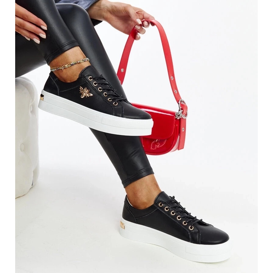 Detalii: Adidași din piele neagră pe talpa groasă a Mikka negru